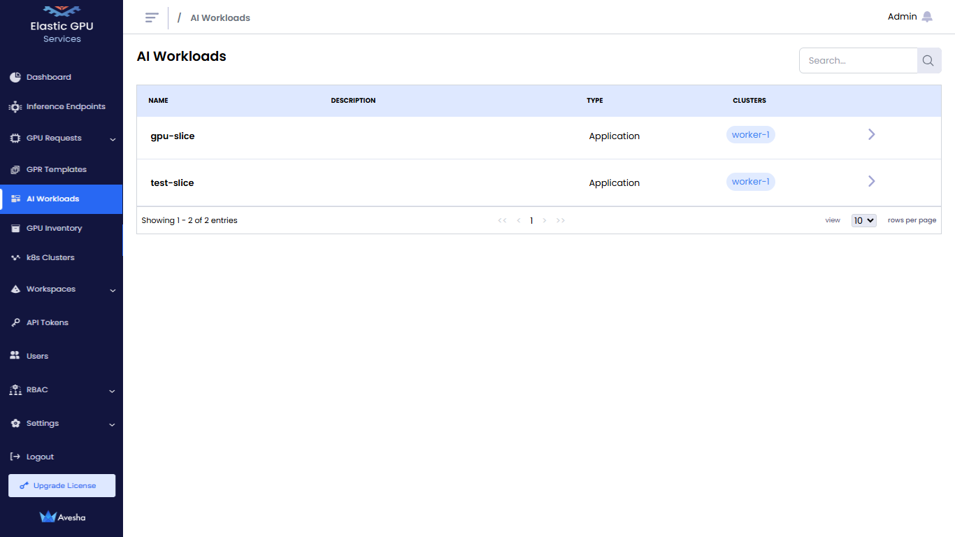 2. On the AI Workloads page, select a workspace to see the AI workloads.